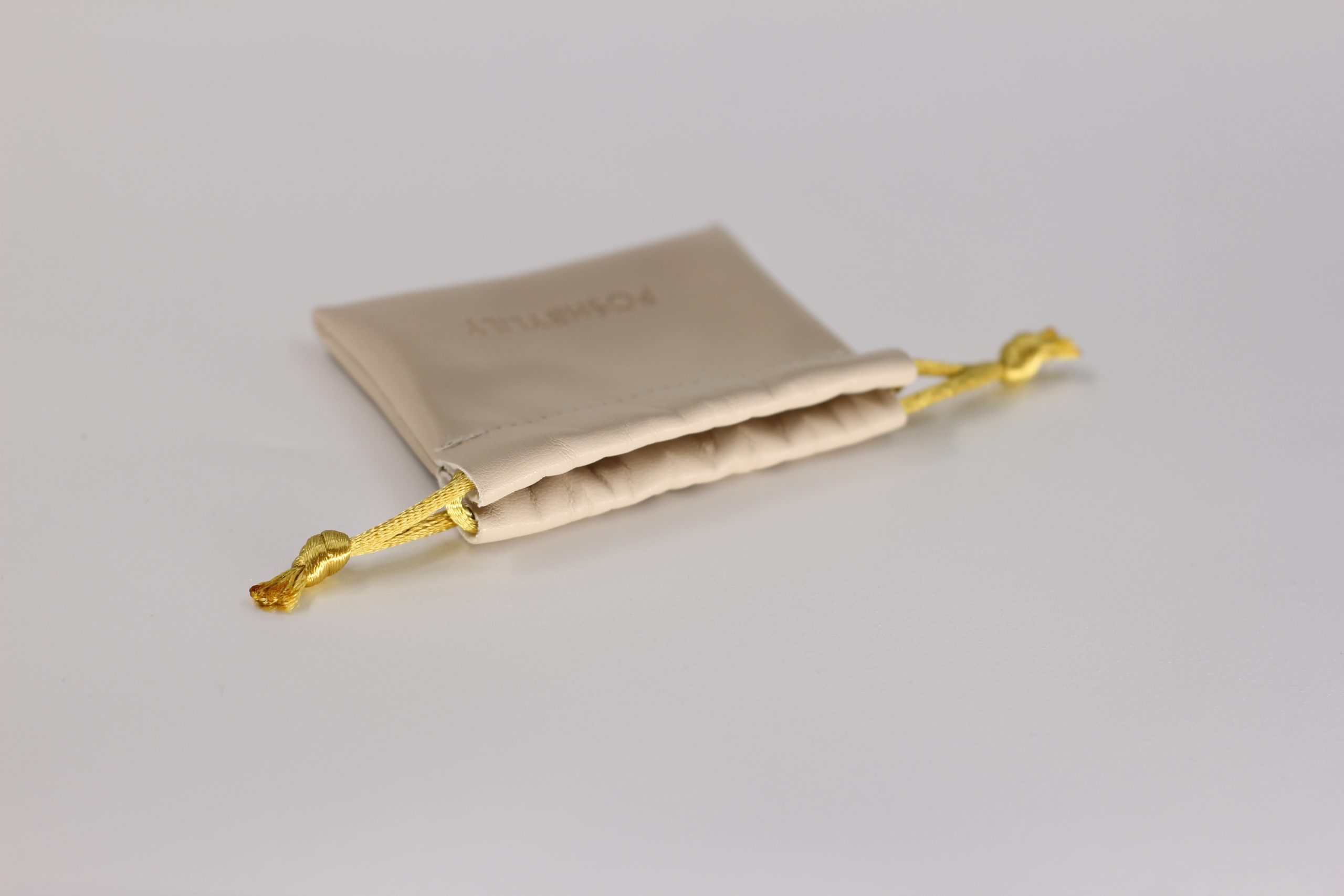 Customized white leather drawstring pocket, premium product packaging bag, from a bag factory in China