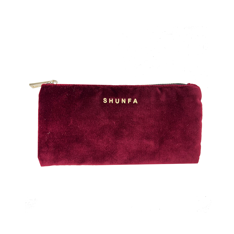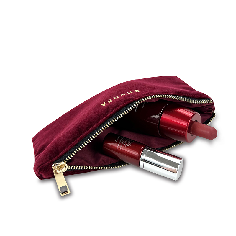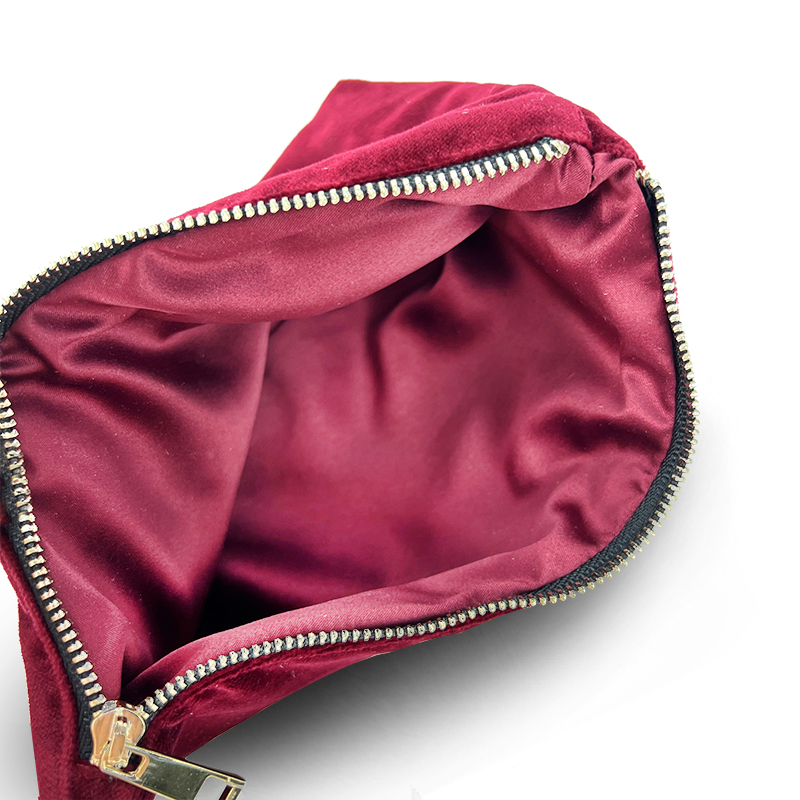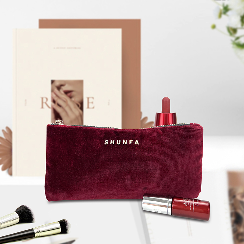 Custom Women Red Velvet Cosmetic Bag With Zipper Soft Velvet Portable Storage Plain Velvet Cosmetic Bag